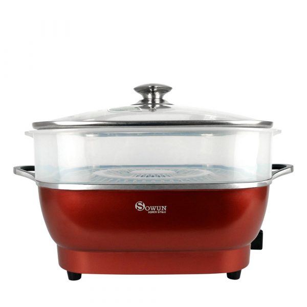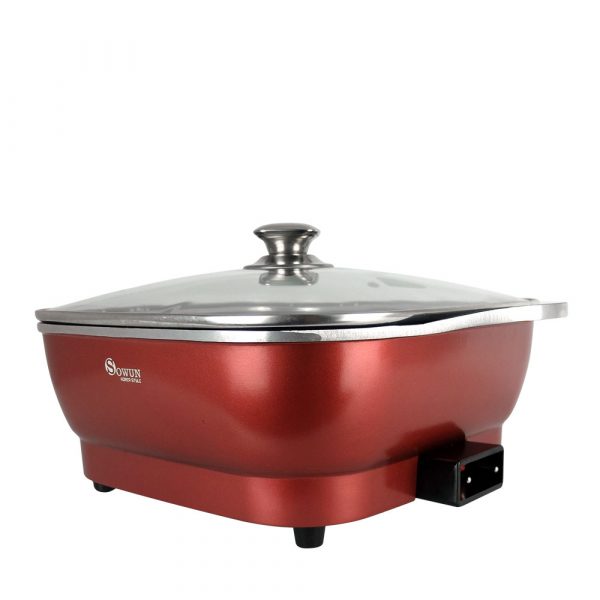 - Nồi lẩu điện Sowun SW 6018 có thiết kế nhỏ gọn, thân nồi được phủ một lớp sơn tĩnh điện màu đỏ nổi bật, sang trọng và bắt mắt.