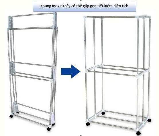 • Dùng khăn mềm hơi ẩm lau sạch khung inox, thanh treo và các bề mặt bên trong.