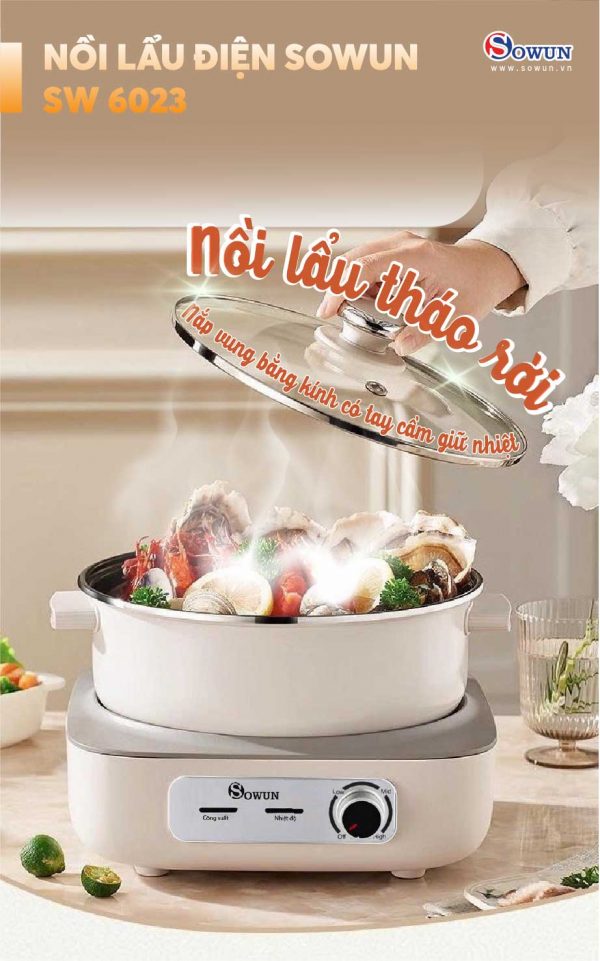 Lẩu điện đa năng SOWUN SW 6023 là lựa chọn hoàn hảo cho những bữa ăn gia đình Việt. Với dung tích lớn 5L, thiết kế lòng nồi tháo rời, sản phẩm đáp ứng nhu cầu nấu nướng đa dạng, linh hoạt chế biến các món ngon cho gia đình.