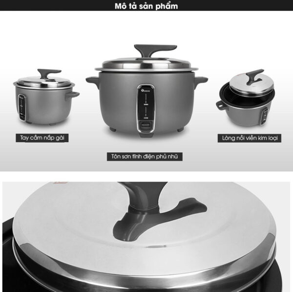 Nồi có dung tích lớn nấu được một lượng cơm lớn phục vụ được nhiều thành viên trong gia đình, công ty, trường học, nhà hàng… là sự lựa chọn hoàn hảo, giúp phục vụ những bữa cơm trắng thơm ngon, nóng hổi mà không mất quá nhiều thời gian, công sức chuẩn bị, tiện ích trong mỗi lần sử dụng.